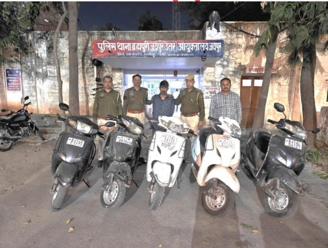 जयपुर। पुलिस थाना ब्रह्मपुरी, जयपुर उत्तर ने दुपहिया वाहन चोरी के मामलों में बड़ी कार्रवाई करते हुए एक शातिर वाहन चोर...