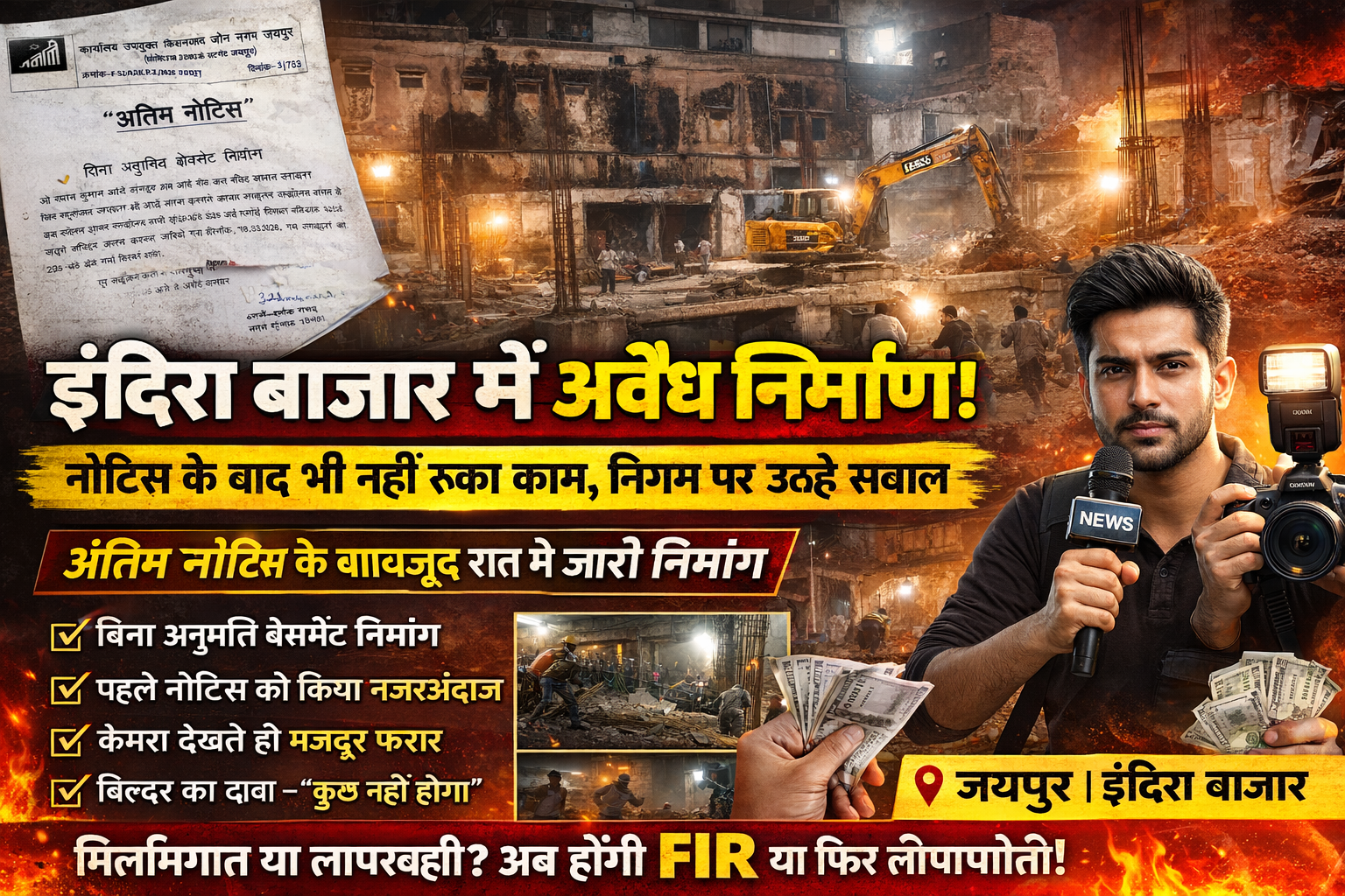 जयपुर के इंदिरा बाजार स्थित सिंह द्वार रोड पर चल रहे अवैध निर्माण को लेकर एक बार फिर नगर निगम की कार्यप्रणाली सवालों ...