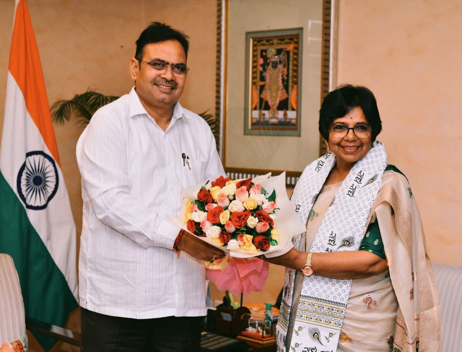 Jaipur में सोमवार को मुख्यमंत्री कार्यालय में मुख्यमंत्री Bhajanlal Sharma ने राष्ट्रीय महिला आयोग की अध्यक्ष Vijaya ...